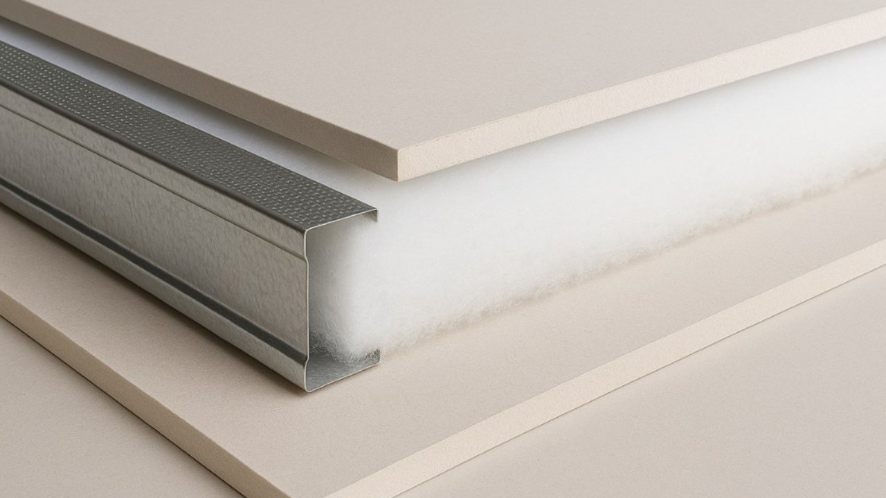 Na construção a seco, a parede funciona como um sistema inteligente, em que cada camada tem um papel fundamental no conforto do ambiente. A lã de PET entra como um elemento estratégico, ajudando a estabilizar a temperatura interna e promovendo bem-estar térmico ao longo de todo o ano.